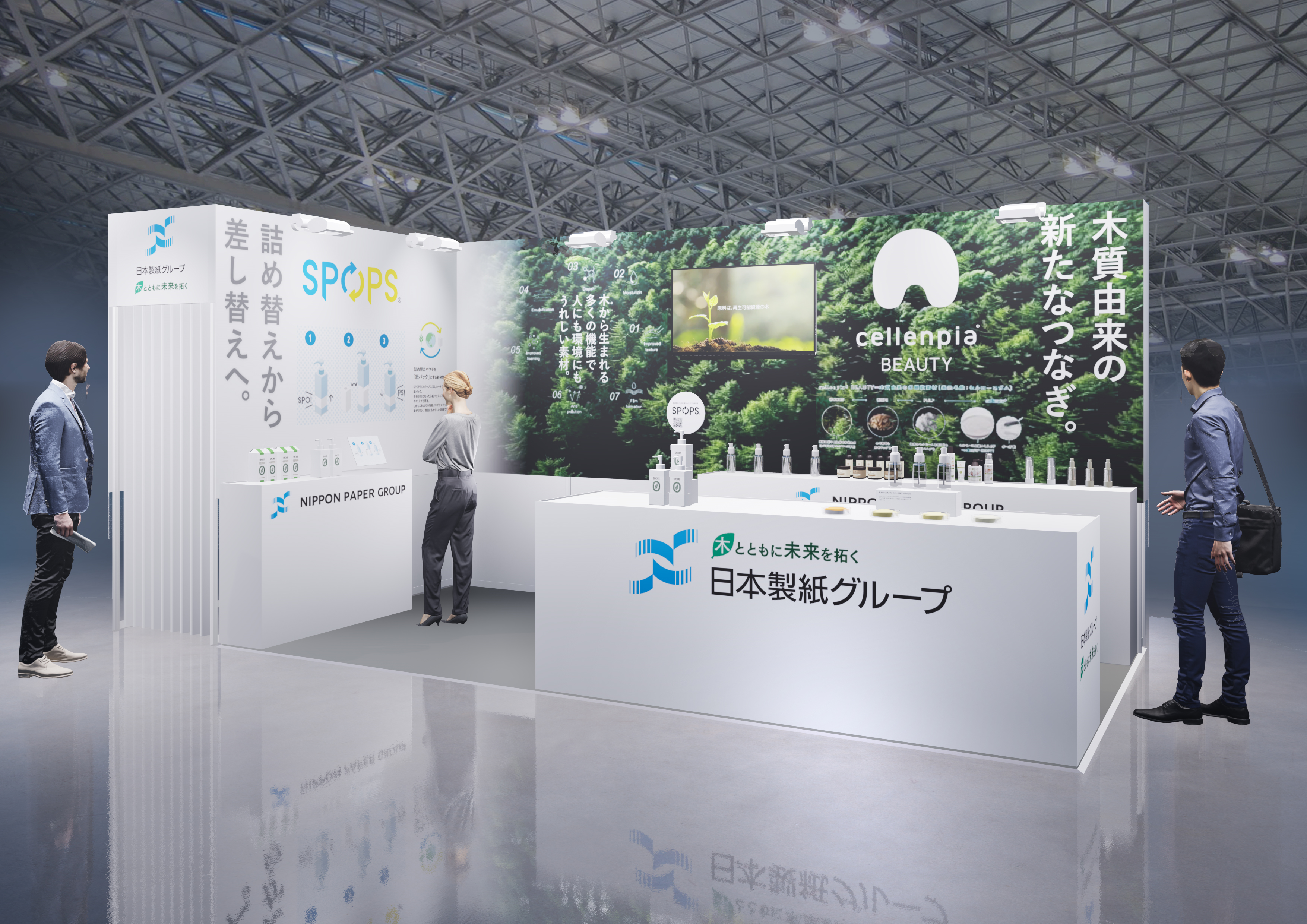 当社は、木質由来の化粧品原料「セレンピアⓇ」と差し替え式紙容器「SPOPS(スポップス)Ⓡ」を紹介します。セレンピアⓇは木材繊維を細かくときほぐすことで生まれる最先端のバイオマス素材です。感触改良、乳化・分散、泡質改善、皮膜形成など多くの機能を有しており、あらゆる課題解決に貢献します。SPOPSⓇは詰め替えの手間削減によるユーザビリティ向上と、バイオマスを主原料とした紙パック使用によるプラスチック廃棄量の削減効果などのサステナブルな魅力を活かした新発想の紙容器で、化粧品の商品価値向上に貢献します。