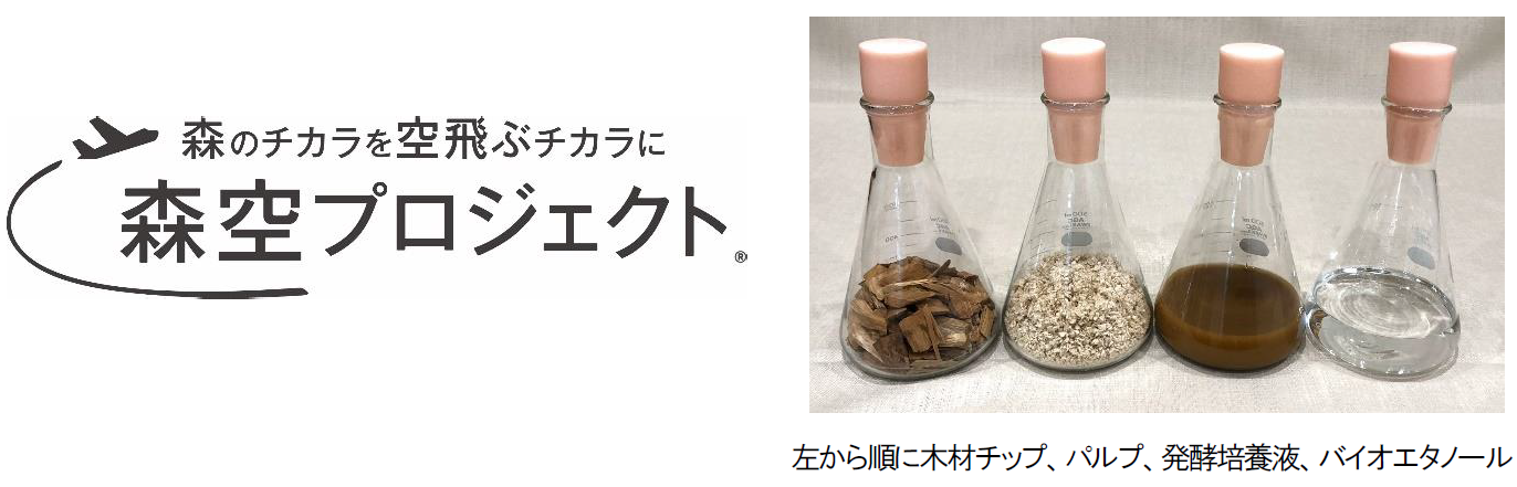 日本製紙株式会社、住友商事株式会社およびGreen Earth Institute株式会社の3社は2023年2月に「森のチカラを空飛ぶチカラに」をスローガンとする「森空プロジェクトⓇ」を発足させました。2025年3月には日本航空株式会社とエアバス社が森空プロジェクトに参画してSAF向け原料となるバイオエタノールの生産と普及の推進体制を強化。2025年7月には日本製紙・住友商事・GEIの3社が出資し、バイオエタノールを製造する森空(もりそら)バイオリファイナリー合同会社を設立しました。