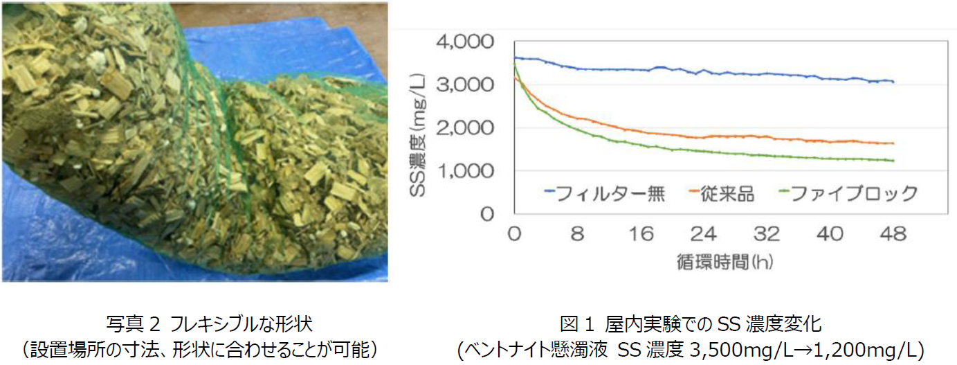 ニュースリリース2種類の天然資材の組み合わせにより濁水処理性能を大幅に向上~環境配慮型濁水処理フィルター『ファイブロック™』を現場実証~
